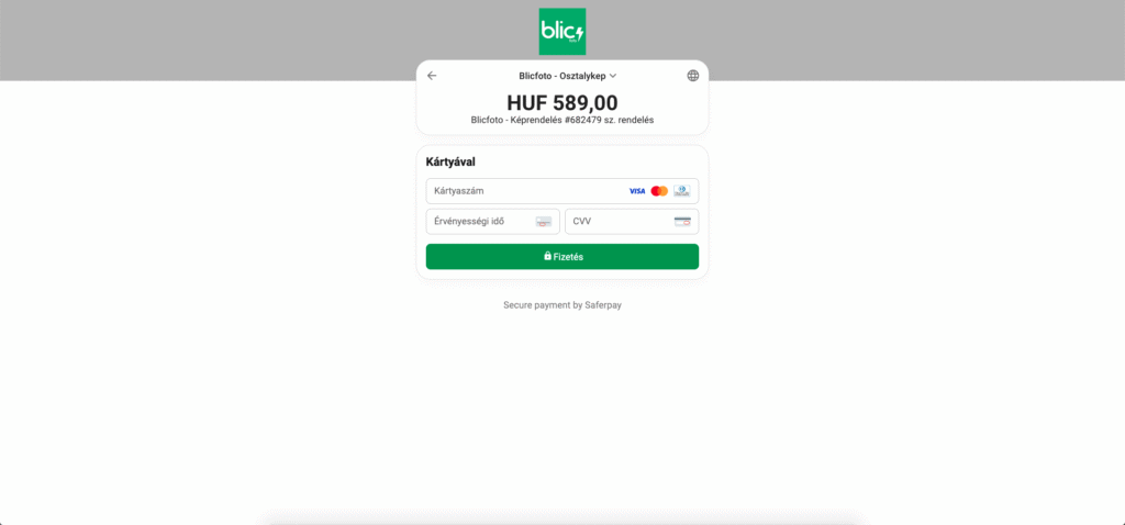Amennyiben bankkártyás fizetést választott, a rendszer automatikusan átirányítja a Wordline – Saferpay bankkártyaterminál oldalára, ahol bankkártyaadatai megadásával tudja a rendelés vételárát fizetni.